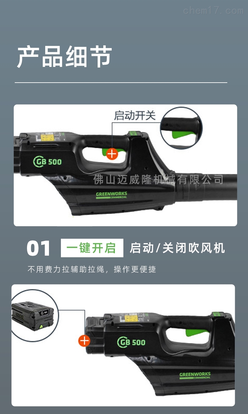 產(chǎn)品詳細(xì)信息:一鍵啟動(dòng)/關(guān)閉吹風(fēng)機(jī),無需用力拉動(dòng)輔助拉繩,操作更方便;82v鋰電池:大功率,鋰電池,重量輕,壽命長;風(fēng)管:吹風(fēng)管,材質(zhì)好,硬度高。