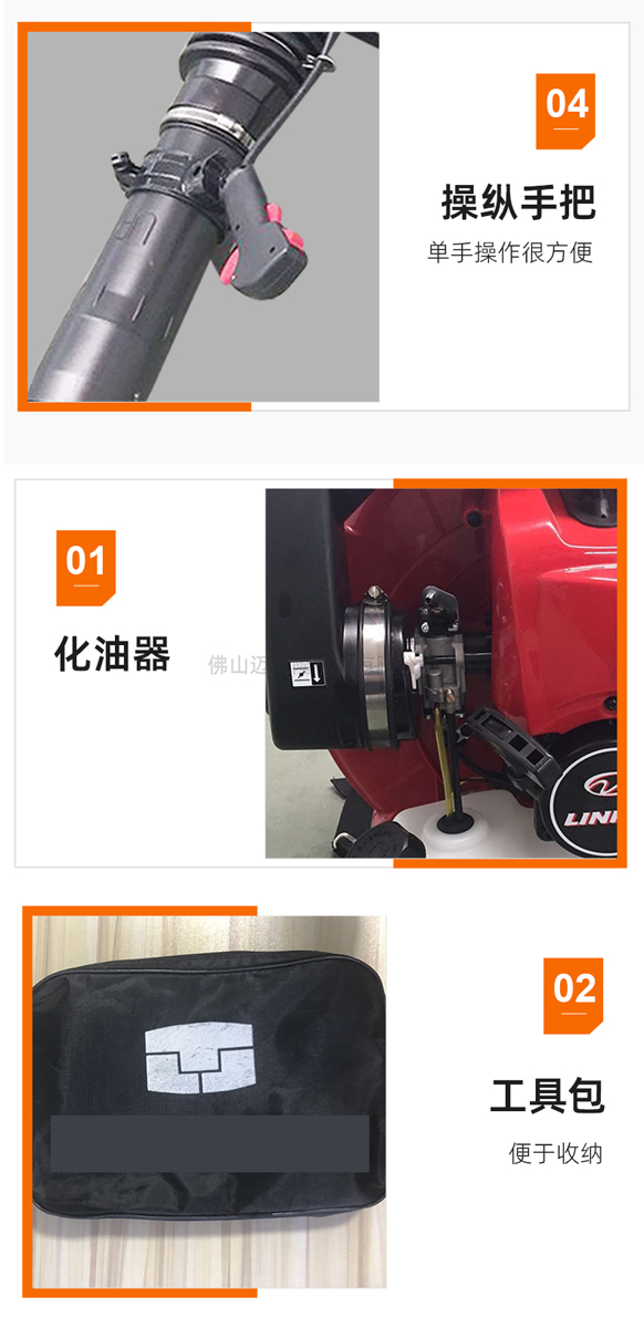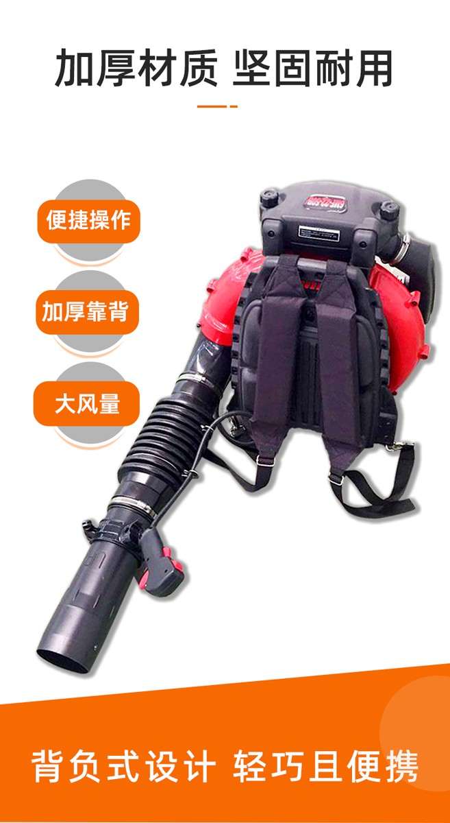 產(chǎn)品特點(diǎn):二沖程發(fā)動(dòng)機(jī)、背負(fù)式風(fēng)力滅火器、掃葉、森林滅火、現(xiàn)場排渣、溫室吹雪、風(fēng)力滅火、道路清潔、環(huán)衛(wèi)清潔。免費(fèi)發(fā)票,一年保修,廣泛適用,包括清掃落葉、沙子和礫石、溫室吹雪、森林消防、建筑工地除塵和排渣。有效滅火距離可達(dá)1.97M。坐墊加厚,加寬加厚,舒適舒適。散熱和通風(fēng)可防止油溫過高。多個(gè)散熱孔使散熱迅速??刹鹦讹L(fēng)管吹管,性能穩(wěn)定,適用性強(qiáng),啟動(dòng)方便,風(fēng)量大,風(fēng)速高,質(zhì)量可靠,油耗低,簡單方便。